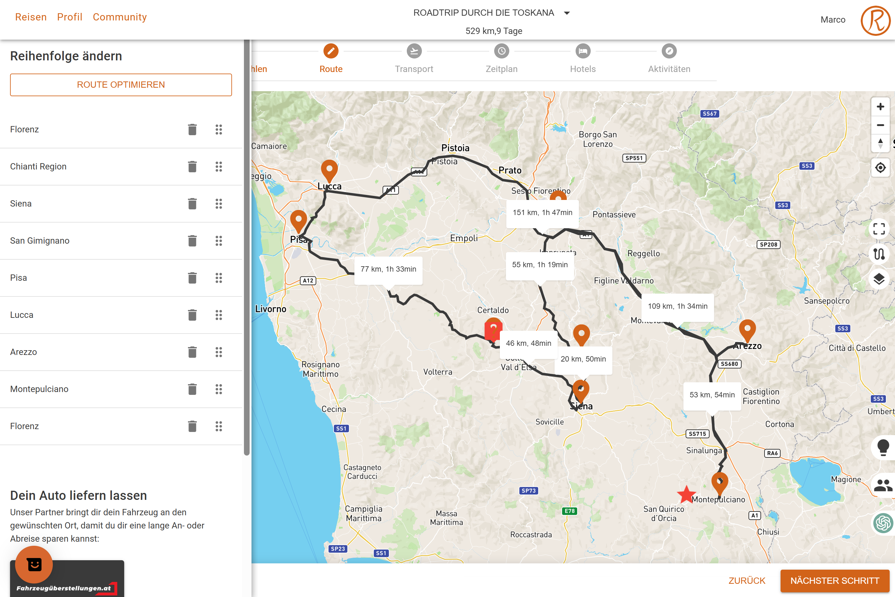 Erstelle deine komplette Reiseroute mit allen Stopps und Reisedaten in unserem Reiseplaner.